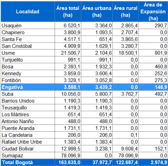 El suelo rural se compone de los terrenos en donde no es apto el uso urbano por estar destinado a usos agropecuarios, forestales, de explotación de recursos naturales, entre otros. La localidad de Engativá tiene una extensión de 3.588,1 hectáreas, de las cuales 3.439,2 hectáreas son de suelo urbano y 148,9 hectáreas de suelo de expansión. No posee suelo rural.